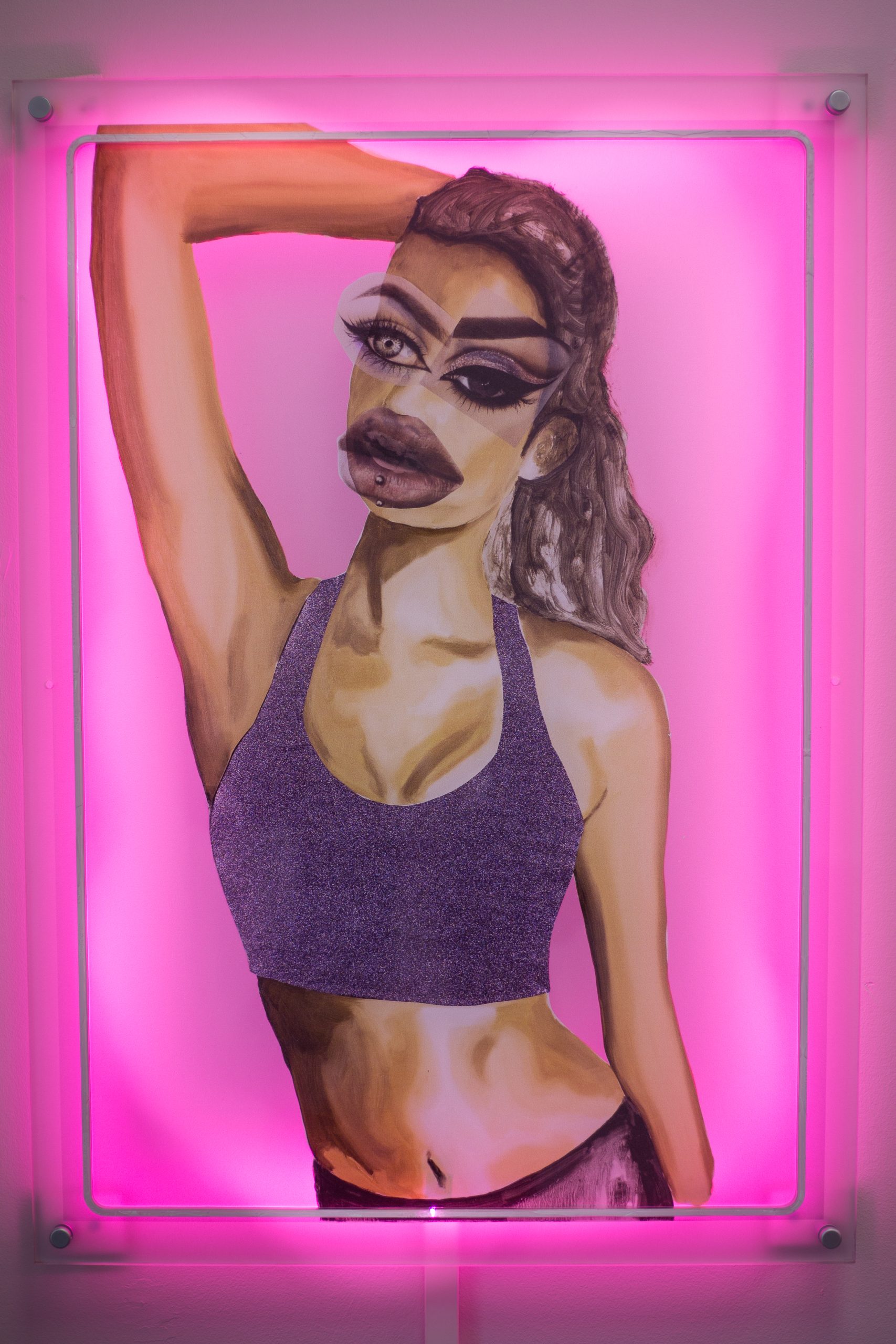 Drawing from contemporary self imaging, the paintings consider how identity is constructed through looking and being seen.